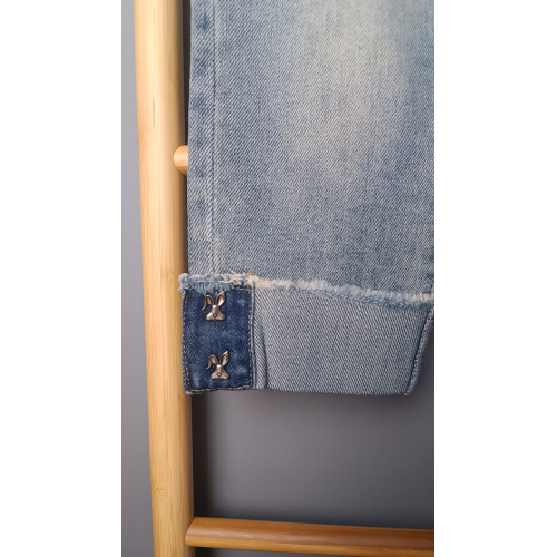 Оригинальные отвороты на брюках с декоративной вышивкой на одной стороне.