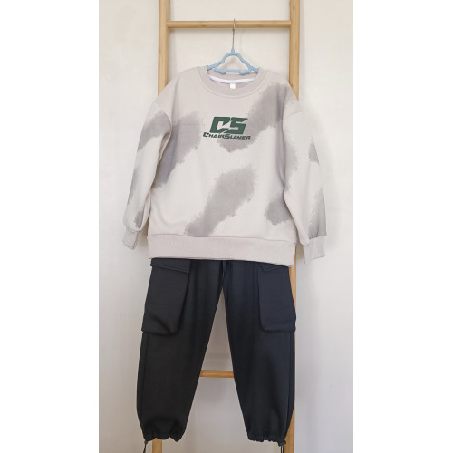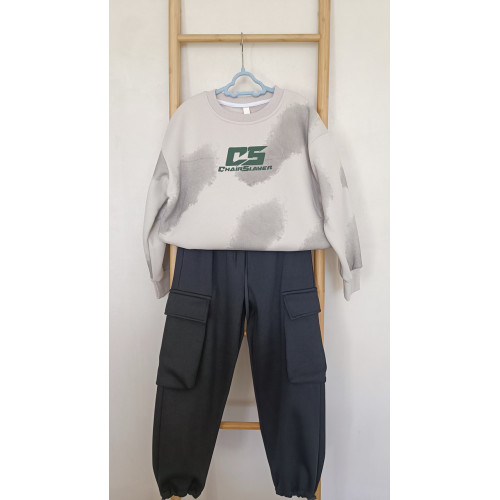 Стильный комплект, состоящий из свитшота и брюк карго. Костюм на флисе.