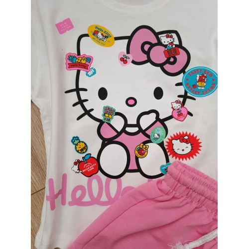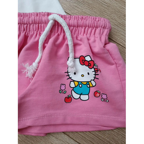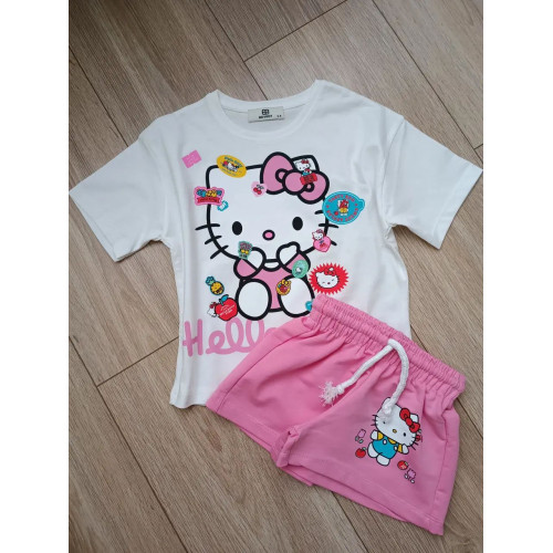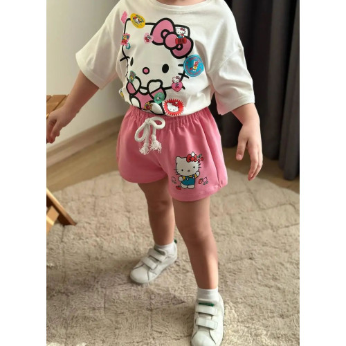 Детский летний костюм Hello Kitty, шорты и футболка для девочки. Комплект включает в себя удобную футболку с ярким принтом и легкие шорты, обеспечивающие комфорт в жару. Выполнен из качественных дышащих материалов, идеально подходит для активного отдыха и повседневной носки.