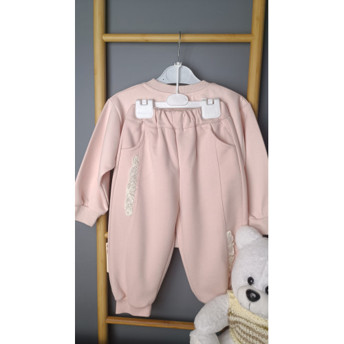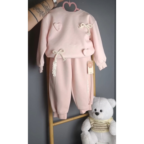 Детский комплект свитшот и брюки в нежно-розовом цвете. Стильный и милый дизайн. Удобный крой, не ограничивающий движения ребенка.