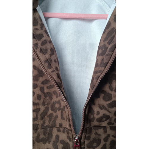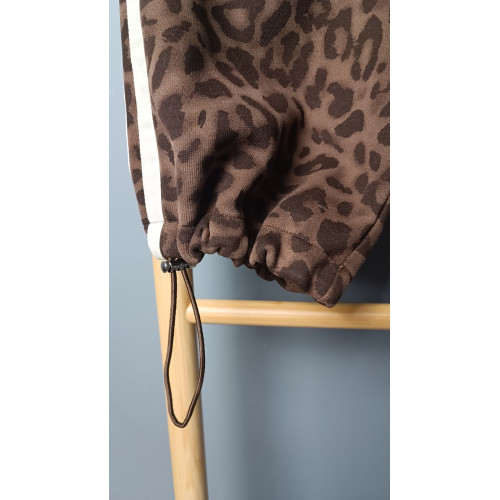 Кофта на молнии с капюшоном и спортивные штаны можно регулировать снизу кулиской. Белые полоски по бокам кофты и брюк добавляют спортивный шик.