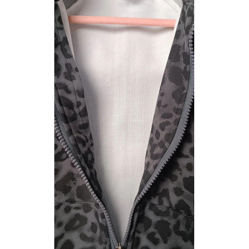 Кофта на молнии с капюшоном и спортивные штаны можно регулировать снизу кулиской. Белые полоски по бокам кофты и брюк добавляют спортивный шик.