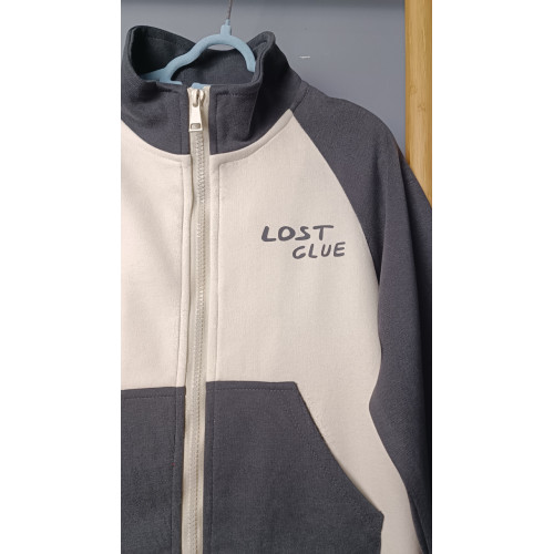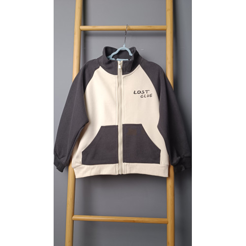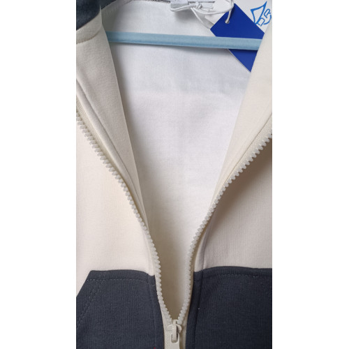 Кофта на молнии, высокий воротник-стойка, длинные рукава и эластичные манжеты. Имеет два функциональных кармана кенгуру.