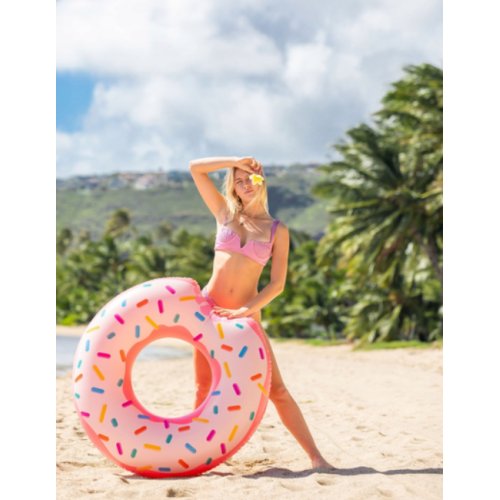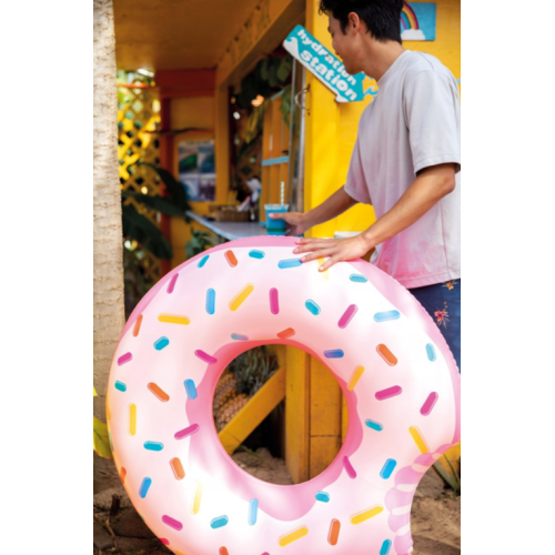 Надувной круг для плавания от 9 лет Надкушенный Пончик Intex 94см розовый (IND-56265)