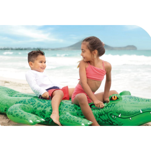 Надувной плотик Intex "Крокодил" — это увлекательное дополнение для водных игр и отдыха! Благодаря реалистичному дизайну в виде зелёного крокодила и четырём удобным ручкам, дети с удовольствием будут кататься, держась за него.