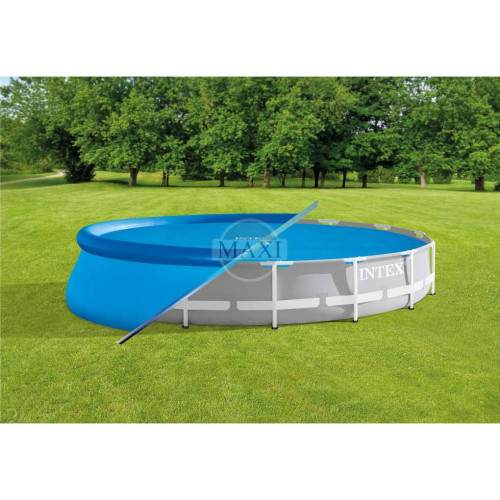 Обогревающее покрывало Intex Solar Cover 28013 подходит для каркасных и надувных бассейнов диаметром около 457 см (фактический диаметр покрытия — 448 см). Особая ячеистая структура тента пропускает солнечные лучи, что позволяет воде быстрее нагреваться днём и медленнее остывать ночью. Покрывало также снижает испарение воды и предотвращает попадание пыли и мусора на поверхность бассейна.