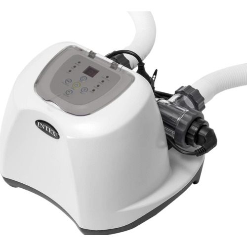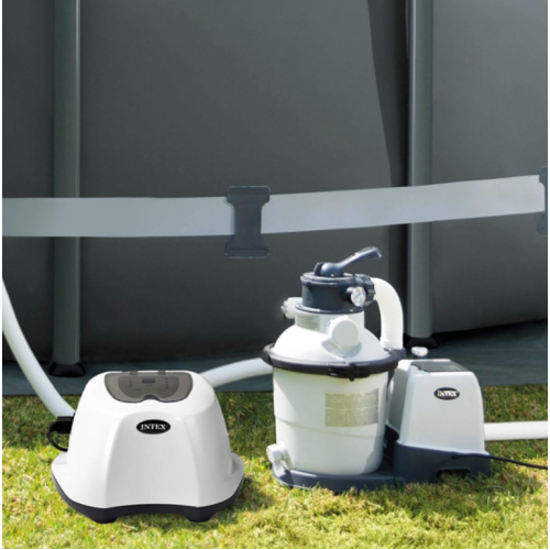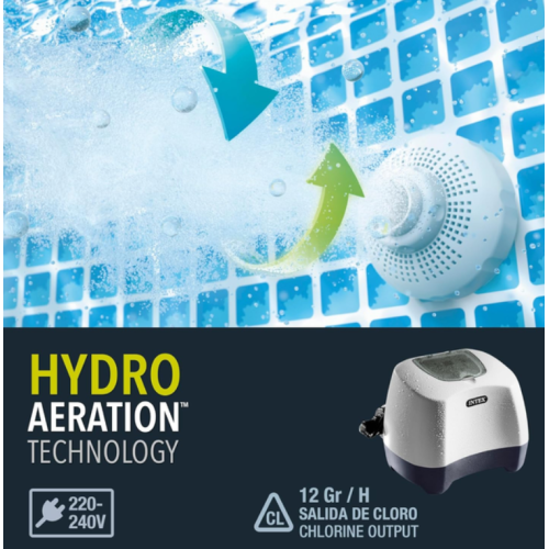 Intex 26670 — это мощный хлоргенератор с производительностью до 12 г хлора в час, предназначенный для дезинфекции бассейнов объёмом до 56 800 литров. Устройство использует технологию электролиза обычной поваренной соли, превращая её в безопасный хлор без резкого запаха и агрессивного воздействия на кожу или глаза.
