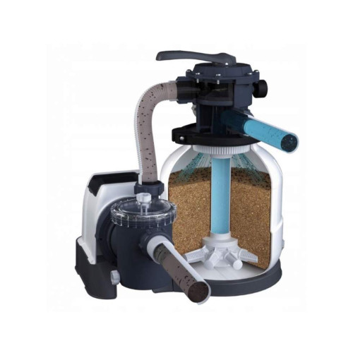 Фильтр-насос работает на кварцевом песке и эффективно задерживает загрязнения любой фракции. Он прост в обслуживании и требует замены песка лишь раз в год. При ежедневном включении на 2–3 часа устройство обеспечивает чистоту воды в течение всего сезона.