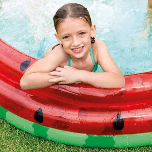 Яркий надувной детский бассейн Intex "Арбуз" (58448) — отличное решение для летнего отдыха. Его оригинальный дизайн в виде сочного арбуза подарит детям радость и поднимет настроение.