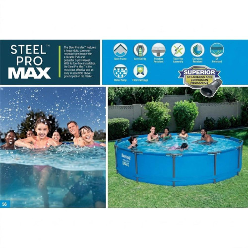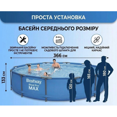 Каркасный бассейн Bestway — это практичное и надежное решение для летнего отдыха всей семьи. Благодаря прочному металлическому каркасу серии Steel Pro Max и трехслойной чаше из армированного ПВХ бассейн отличается долговечностью, устойчивостью к нагрузкам и быстрым монтажом без специальных инструментов.