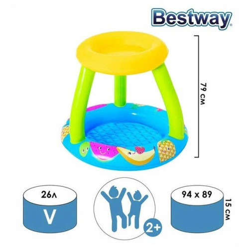 Абсолютно безопасный и надежный детский бассейн Bestway — идеальный выбор для малышей в теплое время года. Предназначен для детей от 2 лет, бассейн изготовлен из износостойкого и плотного ПВХ, который не выделяет токсичных запахов даже при нагревании на солнце. Функциональный навес защищает от прямых солнечных лучей и помогает избежать перегрева.