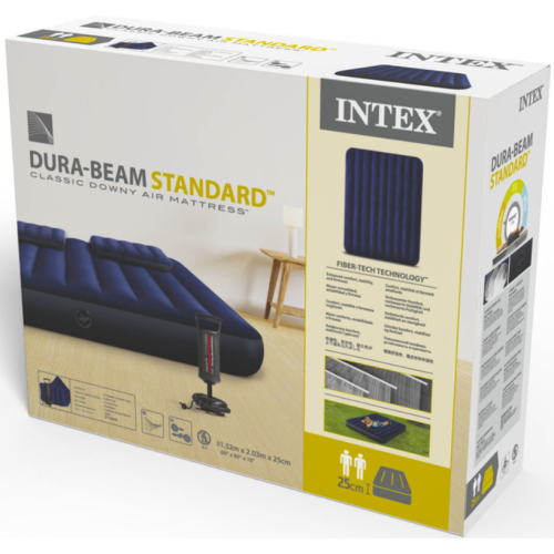 Надувной матрас Intex размером 203 x 152 x 25 см — это комфортная двуспальная кровать с двумя встроенными подушками, идеально подходящая для использования дома, на даче или на отдыхе.