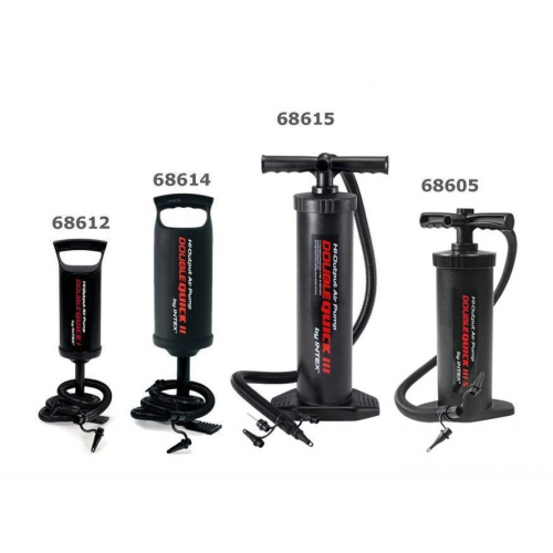 Ручной насос Intex 68615 (Тип III) — это двухходовой насос, подающий воздух как при нажатии, так и при подъеме поршня, что ускоряет процесс накачивания в два раза по сравнению с односторонними моделями.