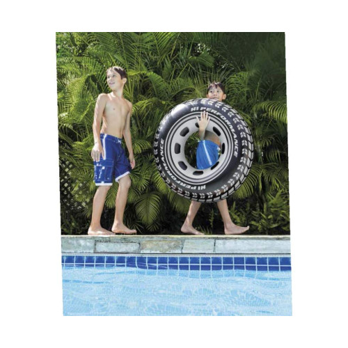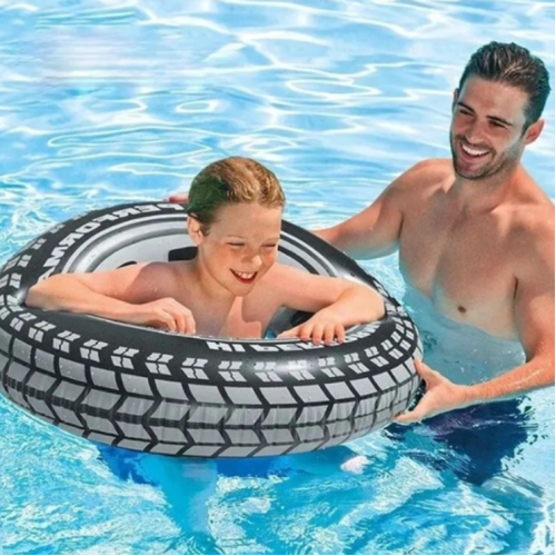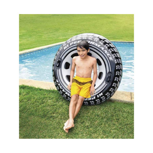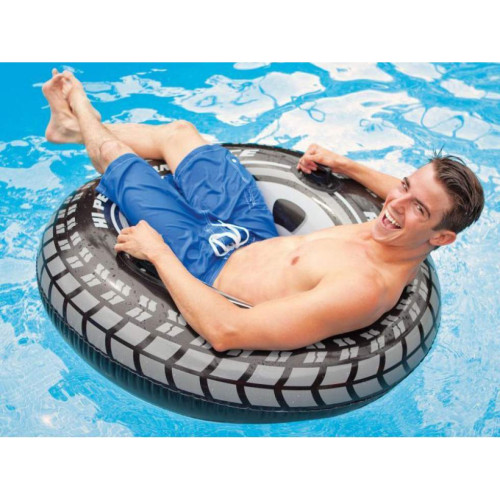 Надувной круг для плавания Intex GIANT TIRE — стильный и надёжный аксессуар для водного отдыха детей от 9 лет. Выполнен в виде автомобильной шины, он отлично смотрится и легко удерживается на воде.