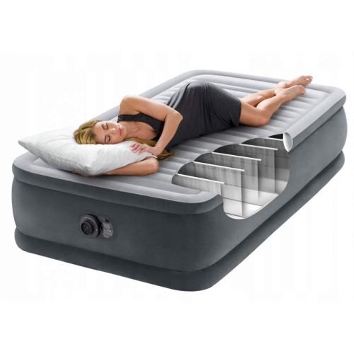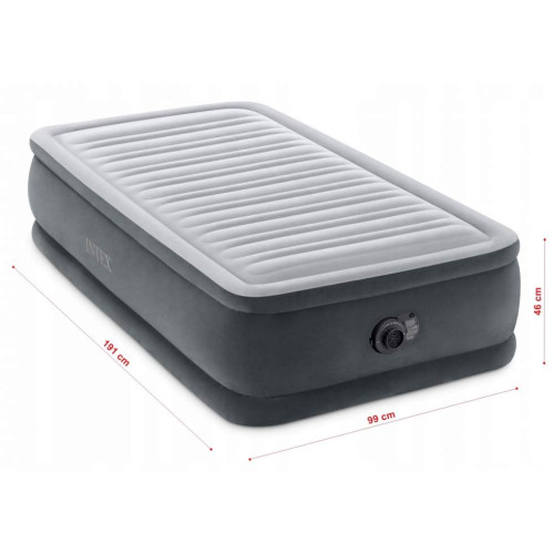 Надувная кровать Intex — это удобное односпальное решение для отдыха и сна. Высота 46 см обеспечивает комфортную посадку, а мягкое флокированное покрытие придаёт ощущение уюта и удерживает постельное бельё на месте.