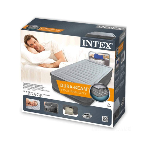 Надувная односпальная кровать Intex со встроенным электронасосом Dura Beam 191×99×46 см (IND-64412)