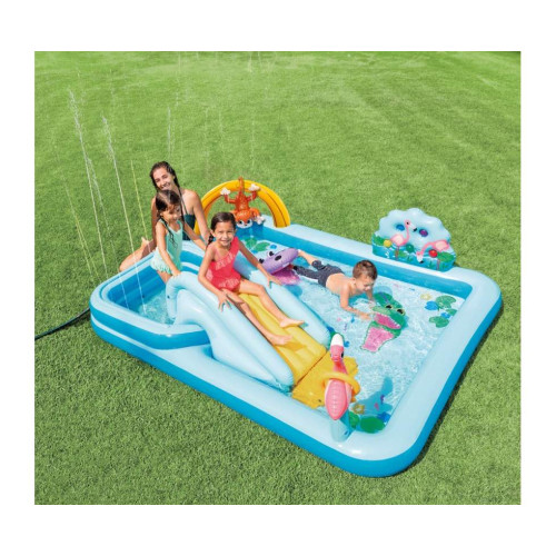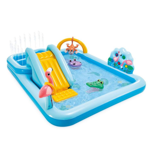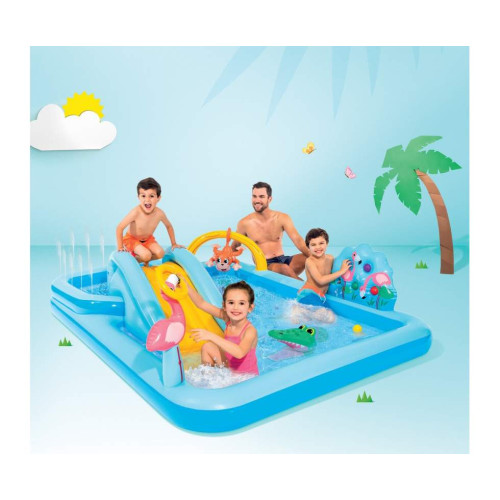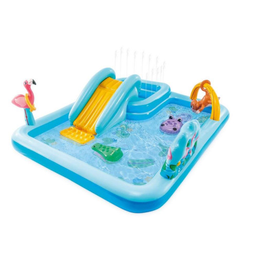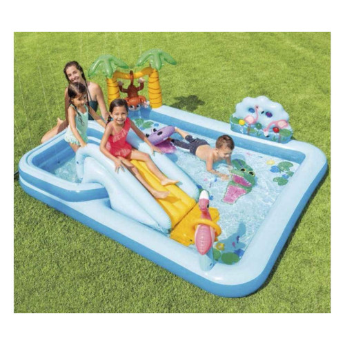 Детский надувной игровой центр с горкой Intex Приключения в Джунглях 254×196×84 см (IND-57161)