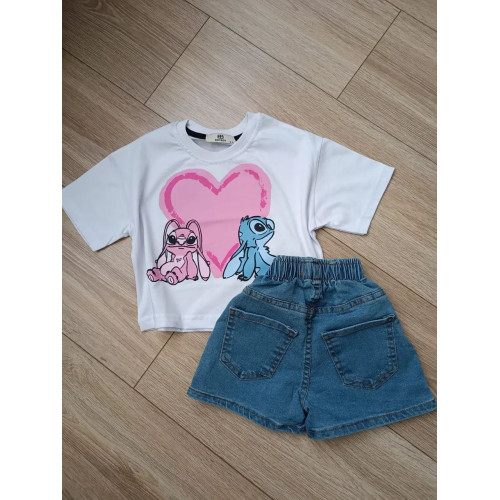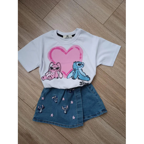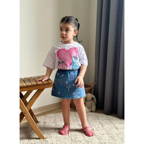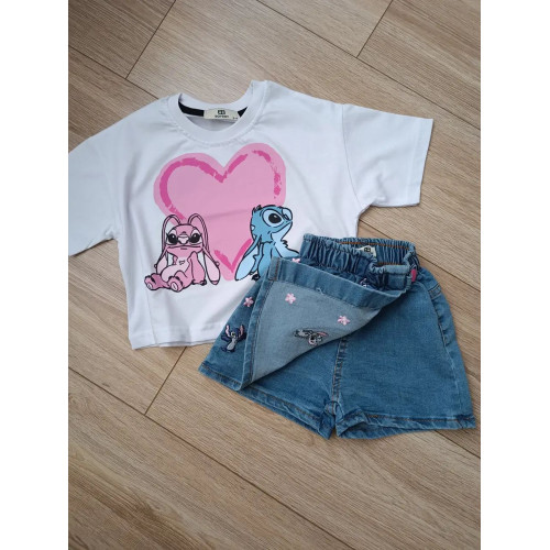 Стильный костюм со Стичем - футболка и джинсовая юбка-шорты с вышивкой. Количество ограничено!!!